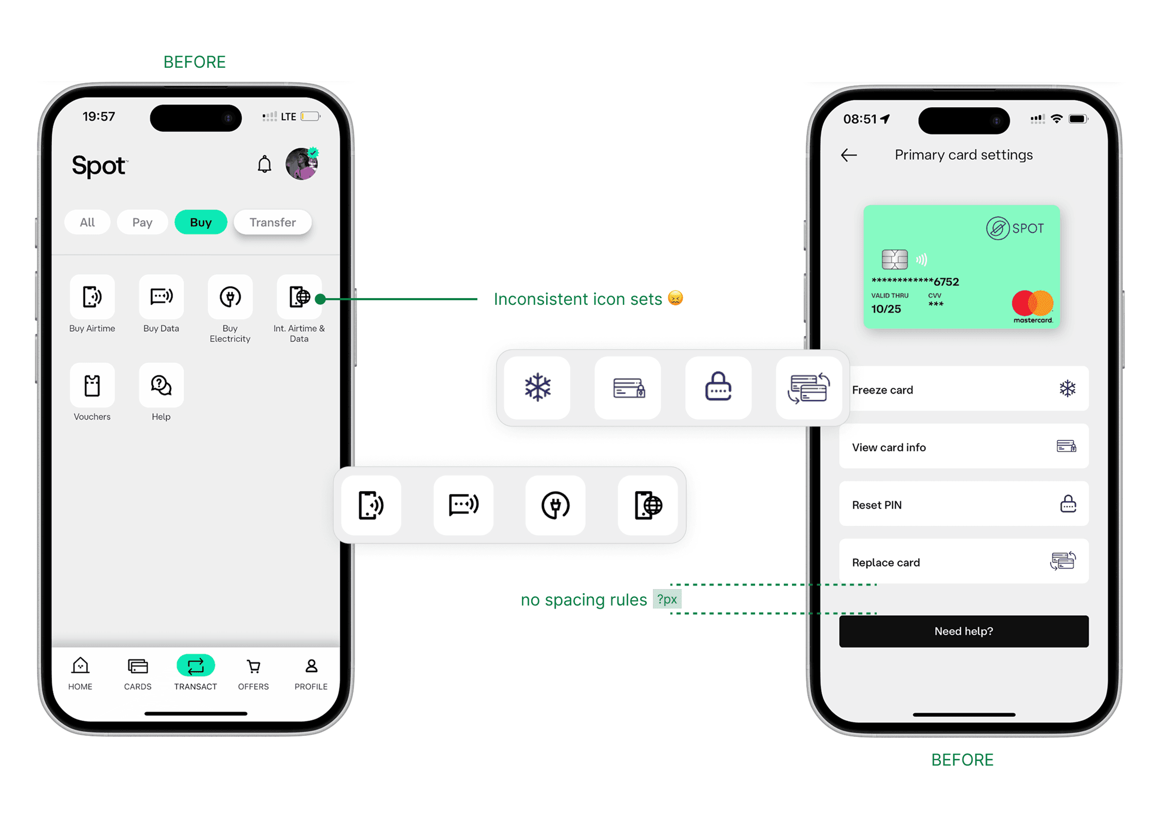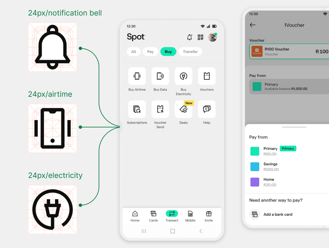 For the past two years, I led the implementation and ongoing maintenance of a comprehensive design system and component library for Spot Money, a native iOS and Android app.